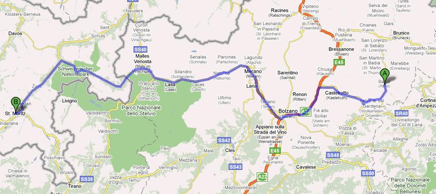 | Pedratsches (IT) - St. Moritz (CH) | 238 | 9.24 | 25,3 | 2900 | ||