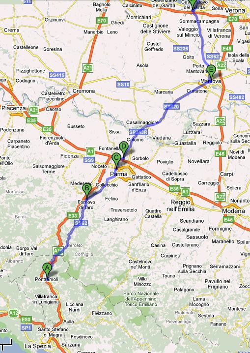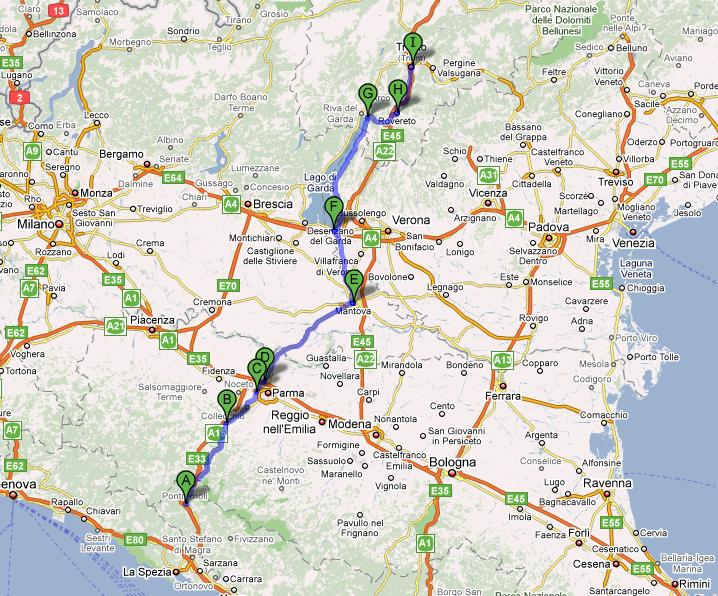 | Pontremoli - Parma - Mantova - Garda Meer - Trento (IT) Eerste zuidelijkste stuk Laatste noordelijkste stuk | 280 | 9.52 | 28,4 | 1000 | ||